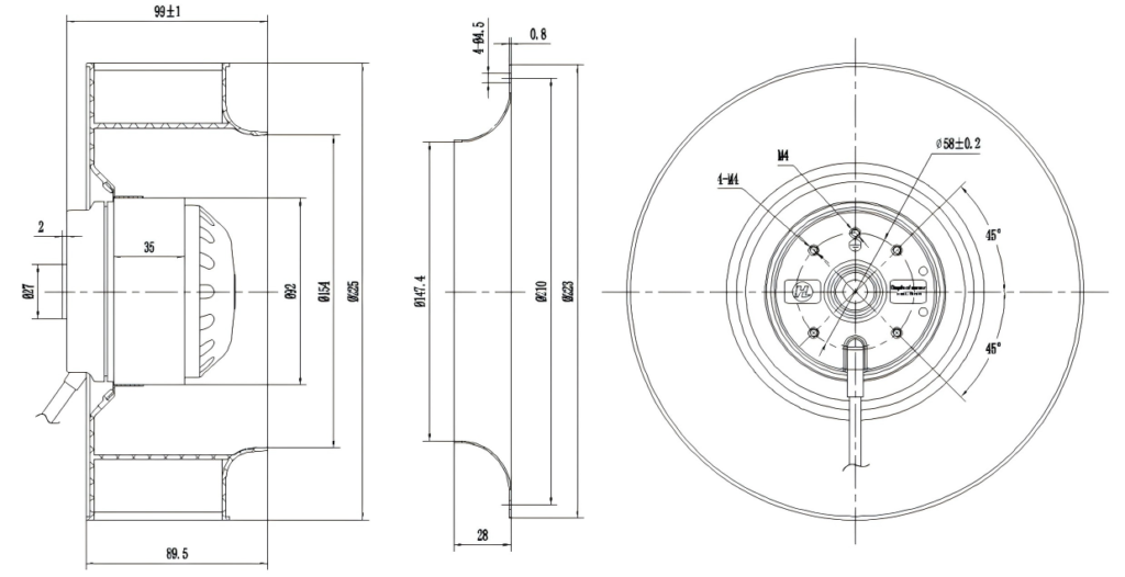Φ225 AC Centrifugal Fans Backward Curved (PP fibreglass-reinforced impeller)